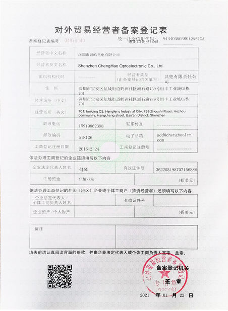 | প্রদান করেছেন: | Shenzhen Bao'an Registration Authority |