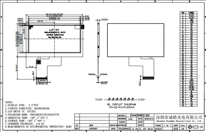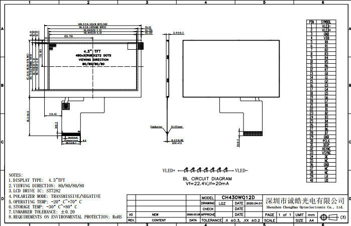 | সাক্ষ্যদান: | ROHS、ISO9001、CE | মডেল নম্বার: | CH430WQ12D |
