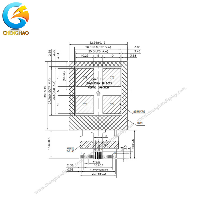 চেংহাও অপটোইলেকট্রনিক CH144QQ17A-CT হল একটি পিসিএপি টাচ স্ক্রিন এলসিডি ডিসপ্লে মডিউল যা 1.44 ইঞ্চি সক্রিয় ডিসপ্লে এলাকা দিয়ে সজ্জিত, যার উজ্জ্বলতা 300 সিডি/মি 2৮-বিট এমসিইউ ইন্টারফেস (টিএফটি) এবং আই২সি ইন্টারফেস (সিটিপি) সমর্থন করে, -20~ এ উপলব্ধ এটি +70 °C পরিবেশে স্বাভাবিকভাবে কাজ করে, এবং পরিষেবা জীবন 30000H অতিক্রম করে। ডিসপ্লে প্যানেল টিএন / ট্রান্সমিসিভ ডিসপ্লে মোড ব্যবহার করে এবং সেরা দেখার কোণ 6:00.